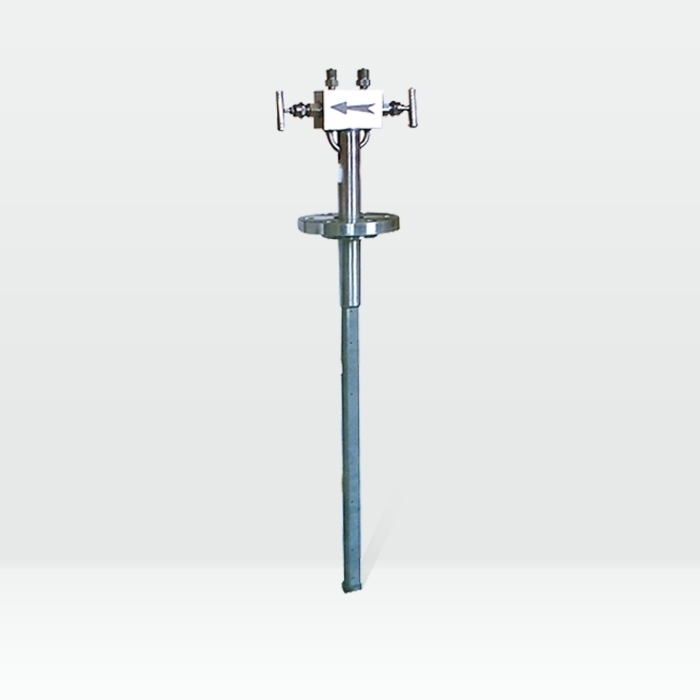 當(dāng)?shù)研蛣蛩俟苷_安裝在有足夠長(zhǎng)度直管段的工藝管道上時(shí),流量截面上應(yīng)沒(méi)有旋渦,整個(gè)截面的靜壓可認(rèn)為是常數(shù)。在檢測(cè)桿的背面中間設(shè)有檢測(cè)孔,代表了整個(gè)截面的靜壓。經(jīng)靜壓引出管由低壓接頭引至變送器的負(fù)壓室,正、負(fù)壓室測(cè)得的差壓的平方與流量截面的平均流速成正比,從而獲得差壓與流量成正比的關(guān)系。 |
